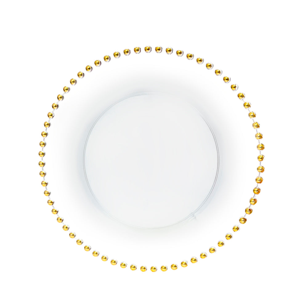 Sirve tus platillos con elegancia y comodidad usando los platos de plástico Home Elegance de 10 pulgadas. Su diseño transparente con borde dorado añade un toque sofisticado a cualquier evento o reunión familiar.