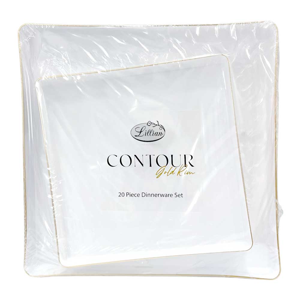Dale un aire elegante y sofisticado a tu mesa con este set de platos cuadrados reutilizables Lillian en color blanco con bordes dorados. Diseñados para combinar estilo y practicidad, son perfectos para celebraciones especiales, cenas familiares y fiestas con invitados.