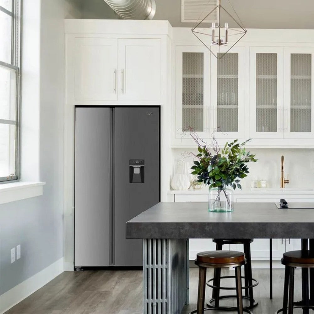 - Su diseño side by side te ofrece una distribución equilibrada del espacio para que puedas organizar fácilmente tus alimentos, bebidas y congelados.