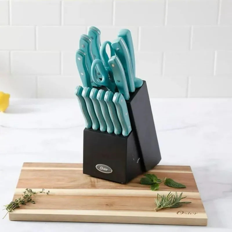 - ¡Haz tuyo el Set de Cuchillos Oster Langmore en Aqua y lleva tus habilidades culinarias al siguiente nivel!