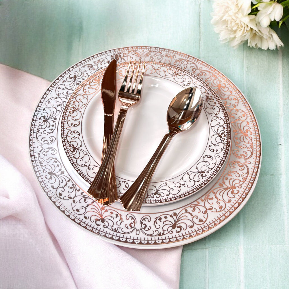 - Los cubiertos vienen con un acabado tipo espejo que hace juego con la tonalidad de los platos.