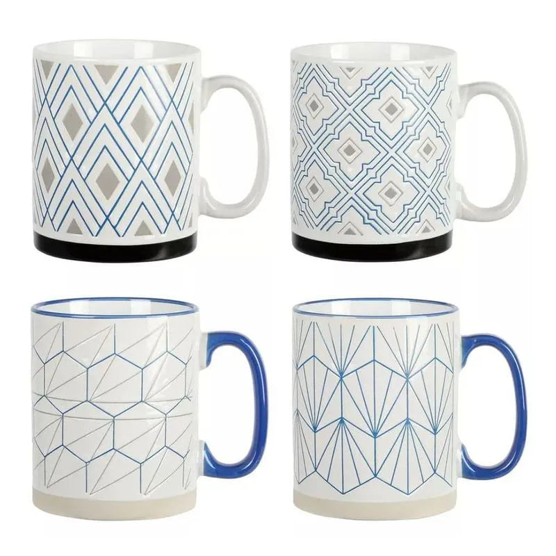 - Cada taza cuenta con su propio diseño geométrico en relieve.