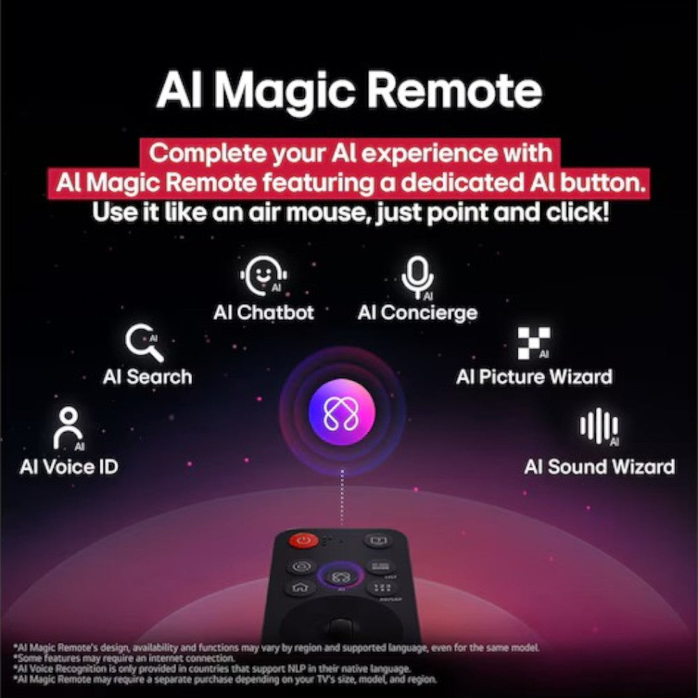 - AI Magic Remote con nuevo botón de inteligencia artificial, control por voz y función de arrastrar y soltar.