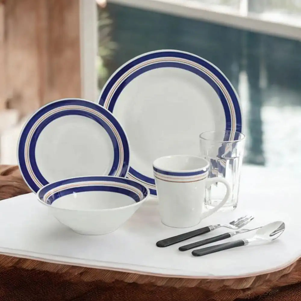 El juego de vajilla Gibson All You Need de 32 piezas es perfecto para quienes buscan una solución completa, elegante y funcional para sus comidas diarias. Con un diseño moderno de líneas en tonos azul marino y amarillo, cada pieza aporta frescura y sofisticación a la mesa. Ideal para desayuno, almuerzo o cena, este set está pensado para acompañarte en cualquier momento del día.