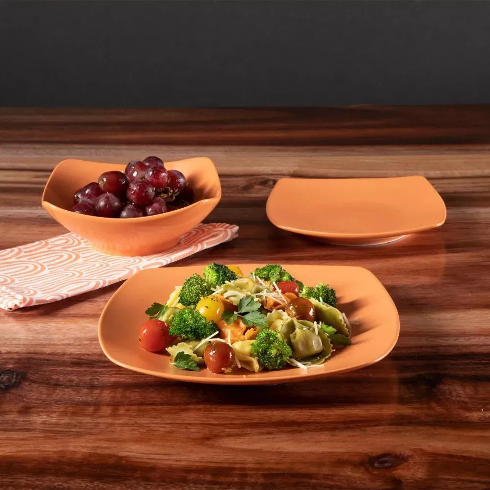 Dale a tu vida hogareña un toque extra de color con el juego de vajilla de cerámica fina de 12 piezas Gibson Home Zen Buffetware.